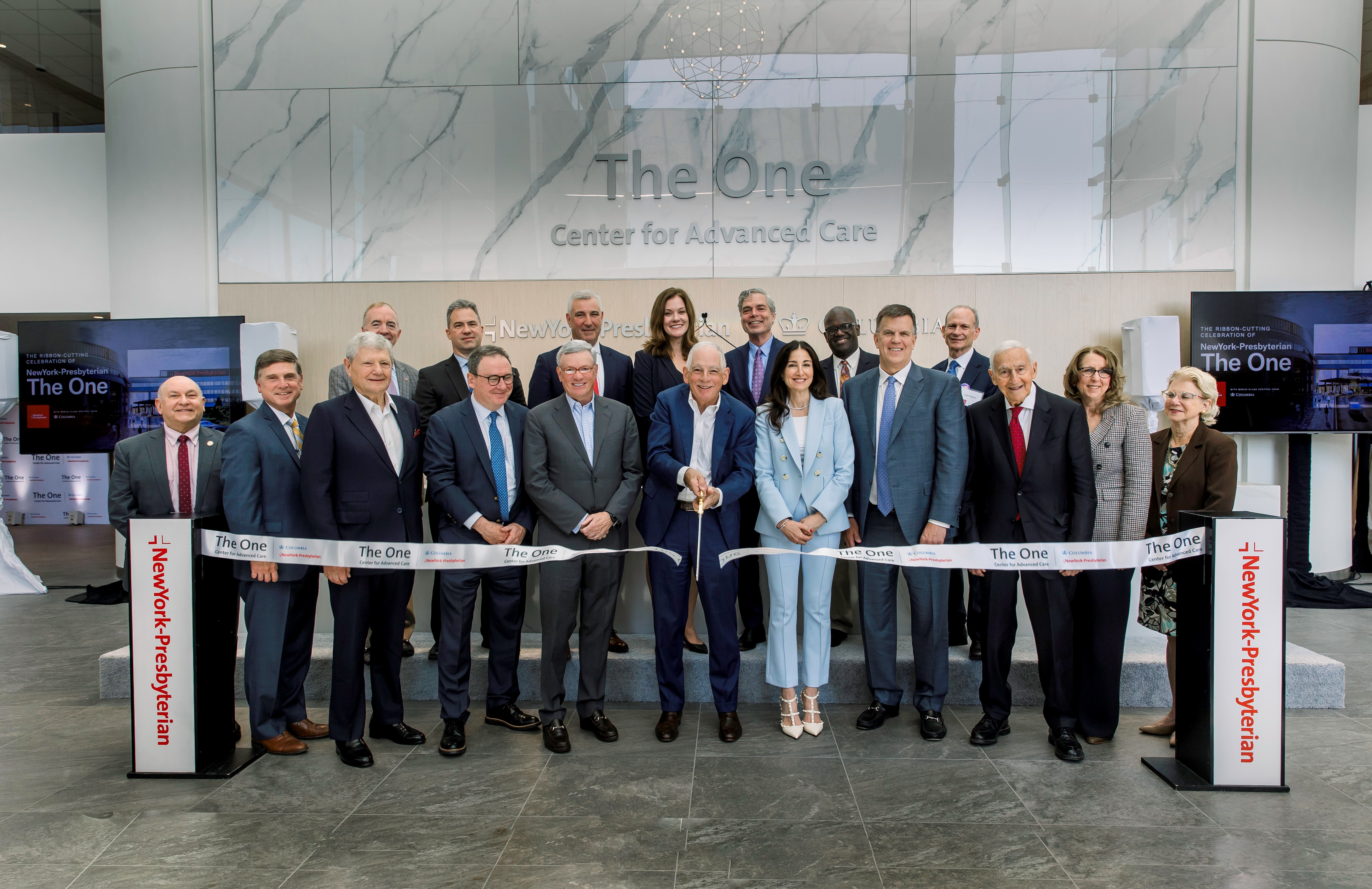 Leadership from NewYork-Presbyterian, Columbia University Irving Medical Center, and elected officials cut the ribbon to celebrate the opening of The One.