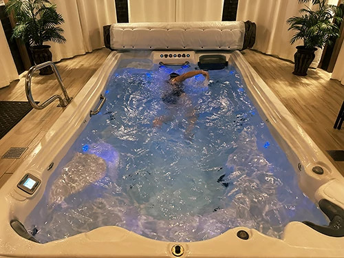 Swimming in open water presented new difficulties even for a veteran swimmer like Bonnie. “I can’t tread water with total spinal fusion—that was the first challenge,” she offers. “My stepson Adam suggested I get a pair of mini-fins. Since it was November in the Northeast, I was only able to use them in my swim spa. Once summer came, I did find they were a great help in treading water.” Training year-round was a natural progression for Bonnie, who keeps her back healthy by frequently swimming against a current. “Although I did not use the swimming fins in the three-mile swim, I found they were the best help in gaining strength throughout my whole body during the winter," she says.