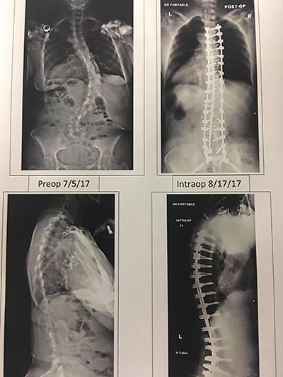 Dr. Lenke and his team performed a total spinal fusion, which successfully changed the degree of the scoliosis curve in Bonnie’s back from 78 to 17 degrees. Bonnie spent five days in the hospital undergoing treatment and observation, supported all the while by NewYork-Presbyterian’s compassionate staff. “I had wonderful nursing care—everyone was just great,” she says.